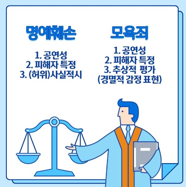 모욕죄는 공공연히 사람을 모욕함으로써 1년 이하의 징역 또는 금고, 200만원 이하의 벌금형 처벌을 받을 수 있으며 모욕이란 추상적인 판단이나 경멸적 감정을 표현한 것으로 명예훼손과 마찬가지로 공공성이 존재해야 합니다. 또한 피해자가 특정되어 있는지 여부도 확인해야 합니다. 다소 그 기준이 모호할 수 있으니 광주 악플 고소 변호사를 통해 먼저 확인해보고 어떻게 진행을 진행해 나가는 것이 현명한지 검토해서 진행하는 것이 좋겠습니다.